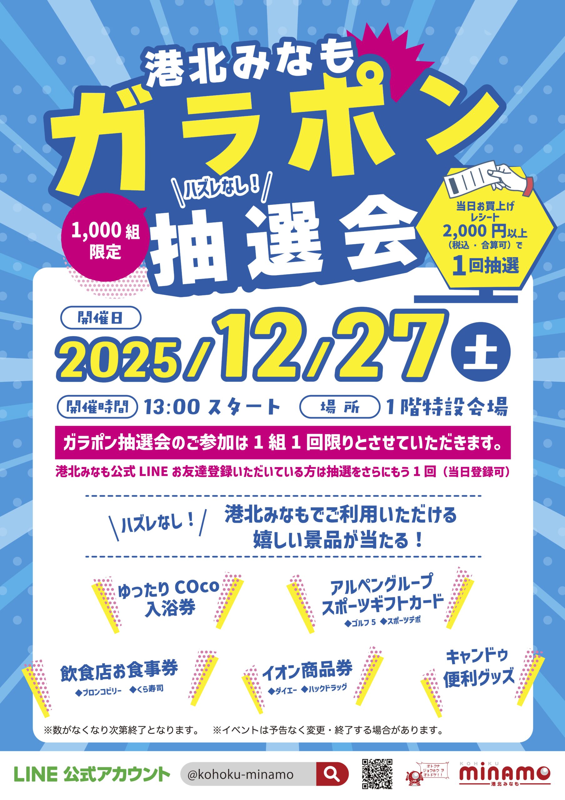 ※ガラポン抽選会のご参加は1組1回限りとさせていただきます。