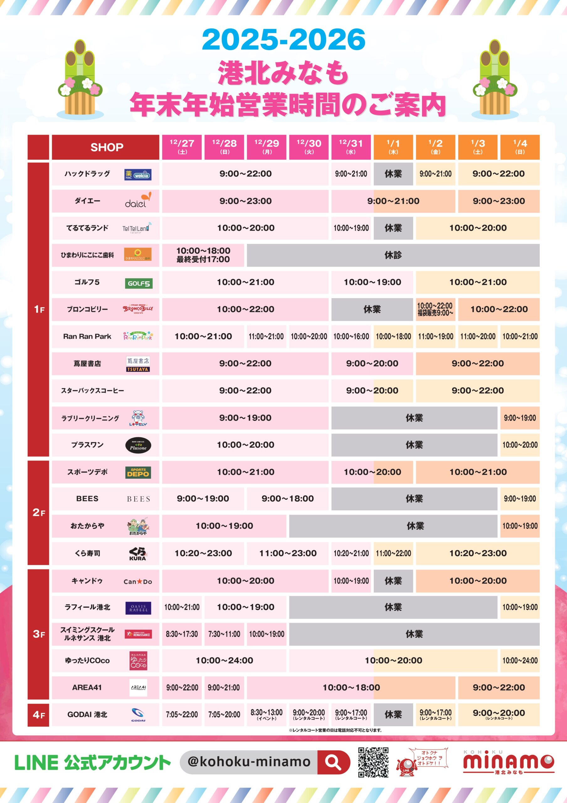 年末年始の営業時間のご案内